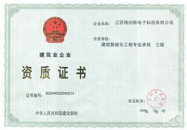 产品名称: 建筑业企业资质证书 |