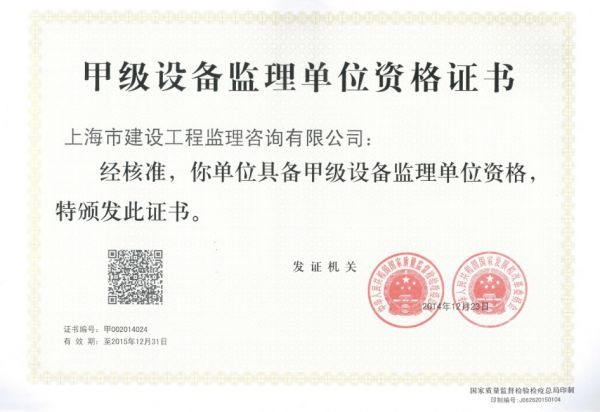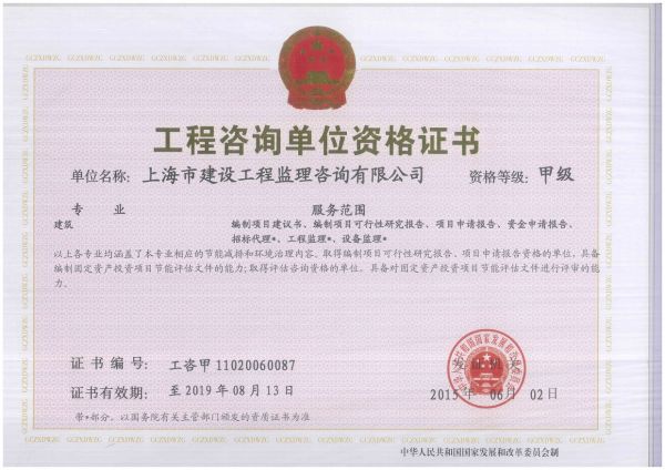 | 持证单位: 上海市建设工程监理咨询有限公司 |