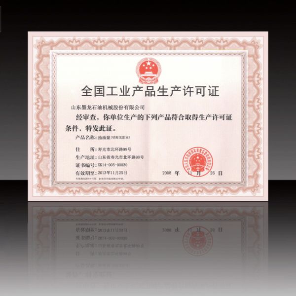 产品名称: 全国工业产品生产许可证(抽油泵) |