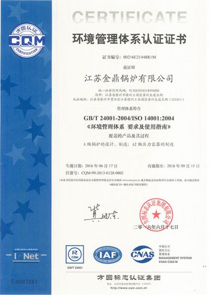 | 销售单位: 江苏金鼎锅炉有限公司 |